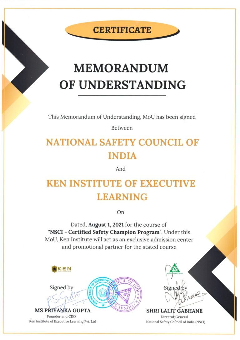 NSC has specially introduced this course in association with KEN Institute of Executive Learning to help the organisations to create a pool of Safety champions, who can become the pillars of a successful safety program of the organisation.
